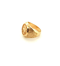 This distinguished men's ring showcases the timeless George and Dragon motif, a symbol of courage and heritage. Crafted in 14k yellow gold, this piece combines classical artistry with substantial weight and presence. At 11.2 grams, the ring offers a satisfying heft that speaks to quality craftsmanship and durability. The Size 10 fit ensures a comfortable wear for most men. The intricate detailing of the George and Dragon design makes this ring an excellent choice for collectors of fine jewelry or those seeking a meaningful statement piece with historical significance. Perfect for everyday wear or special occasions, this ring merges traditional elegance with enduring value.