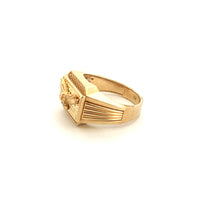 This striking men's ring combines timeless craftsmanship with bold symbolism. Crafted in 10k yellow gold, the design features a commanding eagle motif paired with sparkling cubic zirconia accents that catch the light beautifully. The eagle represents strength, freedom, and distinction—making this piece ideal for the man who values meaningful jewelry with character. Sized at 10 1/2 with a substantial 8.7-gram weight, the ring offers excellent presence on the hand while maintaining comfortable everyday wear ability. The 10k gold composition ensures durability and lasting luster, while the CZ stones provide brilliant sparkle at an accessible price point. Perfect for those seeking a statement ring that balances sophistication with masculine appeal.