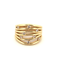 This elegant six-line ring showcases timeless sophistication with its expertly crafted 14k yellow gold construction. The cubic zirconia stones are precisely set across six distinct lines, creating a striking geometric pattern that catches light beautifully. Sized at 7 with a refined weight of 4.9 grams, this piece offers substantial presence without excessive bulk. The 14k gold ensures durability and lasting luster, making it an ideal choice for daily wear or special occasions. Perfect for those seeking a statement ring that balances modern design with classic elegance.
