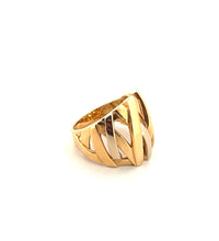 Elevate your jewelry collection with this sophisticated two-tone openwork ring, masterfully crafted in 18K gold. The intricate openwork design showcases exceptional artisanal detail, blending warm and cool tones for a versatile piece that complements any style. Weighing 9.4 grams, this ring offers substantial presence without excess weight, making it comfortable for everyday wear or special occasions. Sized at 8, this elegant statement piece demonstrates the quality and precision you expect from fine jewelry. The two-tone composition creates visual depth and dimension, allowing the openwork pattern to catch light beautifully. A timeless investment in luxury craftsmanship.