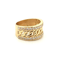 Elevate your jewelry collection with this sophisticated women's ring, meticulously crafted in 14k yellow gold. Featuring an intricate chain design adorned with sparkling cubic zirconia stones, this piece combines timeless elegance with contemporary flair. The CZ stones catch light beautifully, delivering brilliant sparkle comparable to diamonds at a fraction of the cost. Sized at 9 3/4" with a substantial 7.2-gram weight, this ring offers substantial presence on the finger while maintaining refined proportions. Perfect for everyday wear or special occasions, the durable 14k gold construction ensures lasting beauty and longevity. An investment piece that transitions seamlessly from casual to formal settings.
