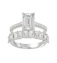 Elevate your engagement with this stunning ladies bridal set, featuring a magnificent 3.00 carat emerald-cut diamond as the centerpiece, complemented by 2.00 carats of brilliant round diamonds in a sophisticated 14K white gold setting. The emerald cut showcases exceptional clarity and depth, while the surrounding round brilliants add sparkle and dimension to create a timeless, elegant look. This complete bridal set combines classic design with premium craftsmanship, offering both the engagement ring and matching wedding band in one coordinated collection. Perfect for the discerning bride who appreciates refined luxury and enduring beauty. Each stone is carefully selected to ensure exceptional quality and brilliance that will be treasured for a lifetime.