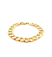 Elevate your jewelry collection with this substantial 14k yellow gold curb link bracelet, expertly crafted for those who appreciate quality and presence. Weighing a solid 28.9 grams, this piece offers the heft and durability expected from genuine 14k gold, making it suitable for daily wear or special occasions. The classic curb link design provides timeless appeal with a polished finish that catches light beautifully. Sized at 8 1/2 inches, it fits comfortably on most wrists while maintaining the structural integrity that heavier gold pieces are known for. An investment-grade bracelet that combines traditional craftsmanship with enduring style.